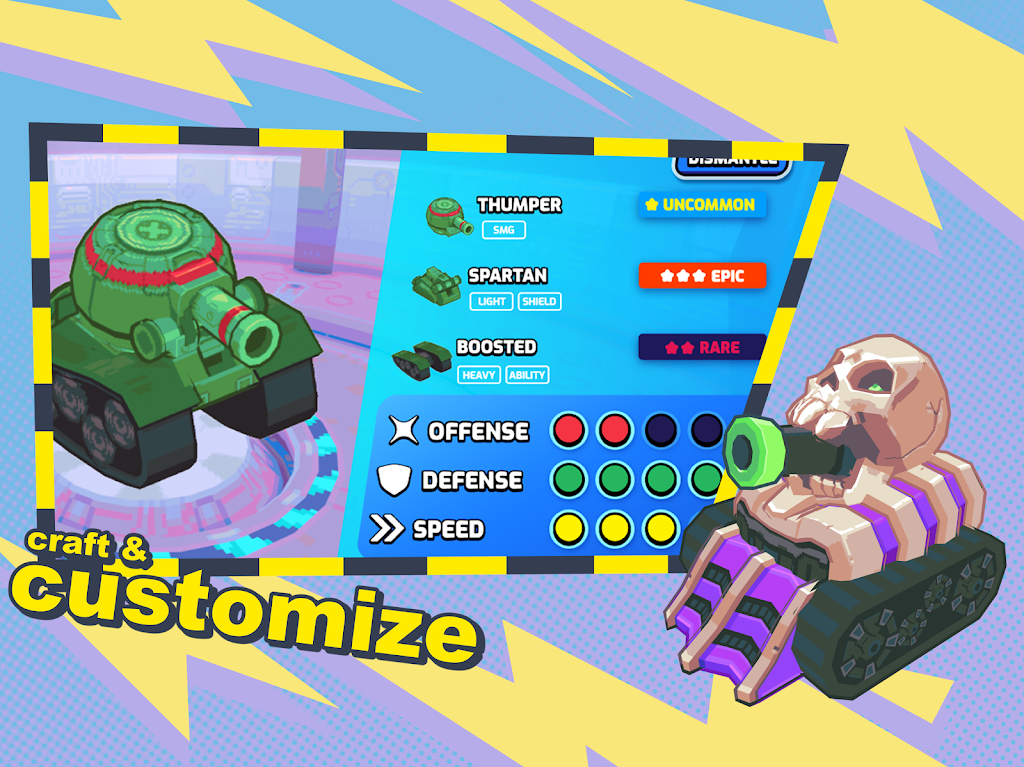 Panzerdogs is a thrilling online PVP tank brawler where you can play solo or team up in intense battles across various game modes. Engage in fast-paced action in modes like Team Death Match, Escort, and more exciting modes coming soon. Play, win, and earn tradeable items that can be used or sold in the marketplace!