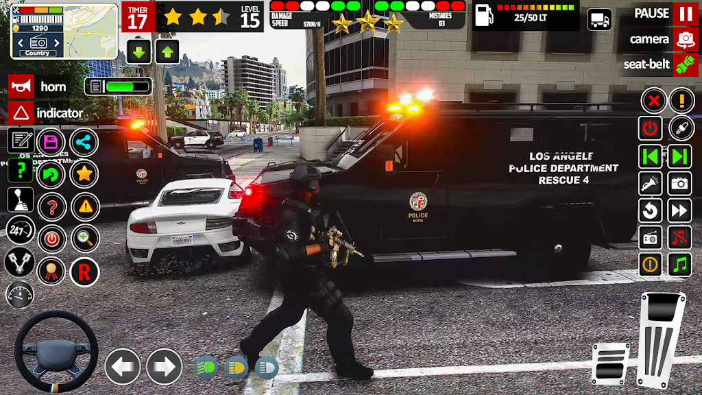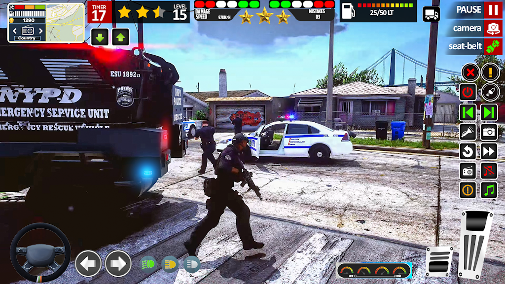 In this police car game, you take on the role of a brave cop chasing down notorious criminals who are terrorizing the city. Whether you're stopping a bank robbery or rescuing hostages, every mission is a test of your driving skills and courage. With stunning 3D graphics and a highly detailed environment, US Police Chase Cop Simulator 2024 offers a realistic and immersive experience. Explore the city, track down criminals, and become the ultimate cop in this fast-paced police chase game.