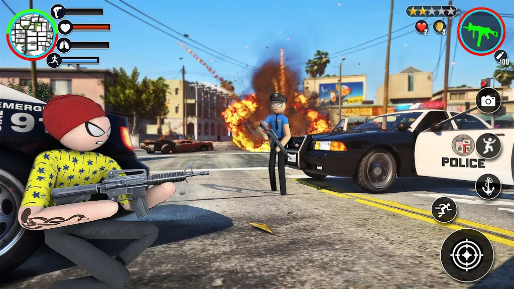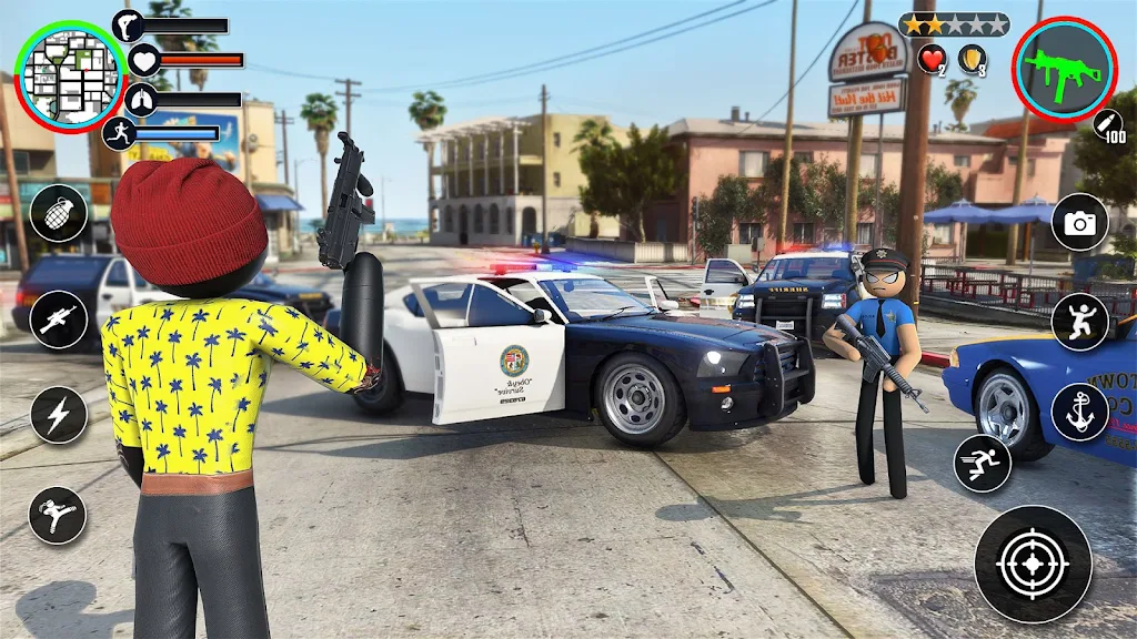 Prepare for intense superhero action in this Miami-based rope hero game! With a variety of superpowers, cars, and vehicles at your disposal, you’ll be able to face off against gangsters and restore order to the city. Your rope skills, combined with your ability to fly and climb, make you the ultimate crime-fighting hero. If you're a fan of stickman superhero games, get ready for the most exciting adventure of your life!