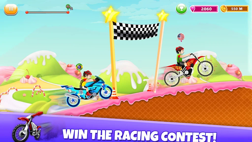 Show off your mountain bike skills, unlock advanced vehicles, and rise as the ultimate champion of offroad stunt racing. Enjoy smooth controls, colorful environments, and addictive challenges that boost your racing mastery in every round.