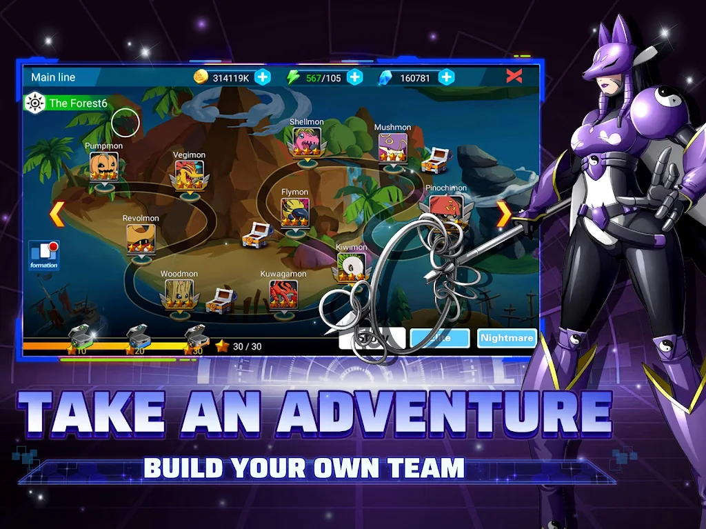 Summon, enhance, and battle with more than 100 Digimon as you journey through 400+ mainline, elite, and nightmare stages. Build the ultimate team, unlock powerful upgrades, and experience a fast-paced creature-collecting RPG perfect for fans searching for “best mobile gacha games,” “anime monster battler,” and “free idle RPG with summons.”