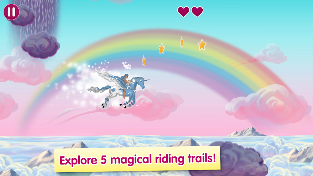 Set out on thrilling Endless Runner challenges, and ride your unicorn through magical sunflower fields or the Enchanted Forest. Fly across rainbows or soar through the stars on your Pegasus, or dive into the depths of Meamare and discover its underwater treasures. With each new adventure, you'll meet fascinating characters, from fairies to mystical creatures, and uncover magical secrets.