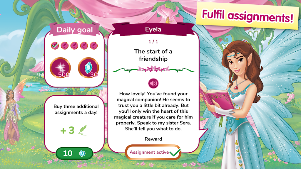 Team up with Eyela, Surah, Sera, Feya, and Marween to defend the fairy kingdom and complete important tasks in the flower hall. Collect valuable gems, earn exclusive rewards, and create your very own scrapbook filled with unicorns, fairies, and other enchanting magical beings!