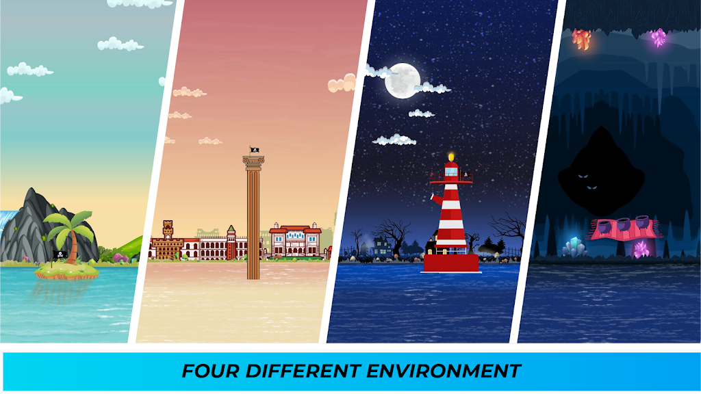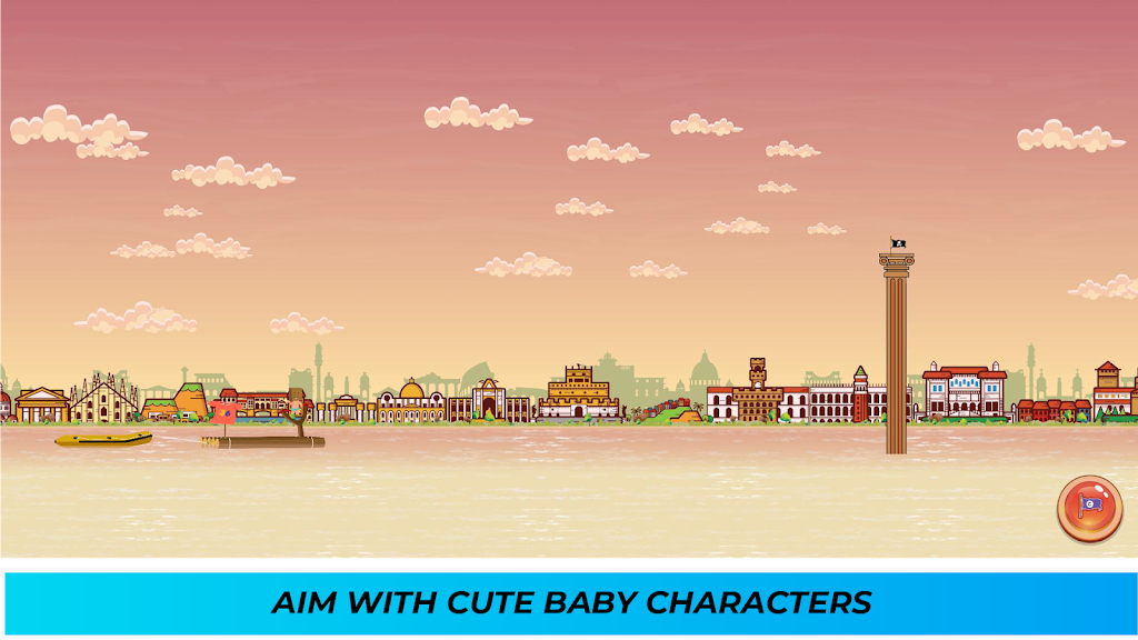 Start your journey with a cute baby character, 10 jewelry pieces, and 3 checkpoints. As you progress through each level, you'll collect more jewelry and unlock new characters and checkpoints. The dynamic environments keep things fresh with varying lighting, objects, and landing points. The gameplay is set on a wooden ship floating on a river, and as you progress, the difficulty will rise with moving landing points and obstacles. Use your aim, arrow direction, and power skills to land on target and complete each level. If you fail, simply restart from a previous checkpoint or the first level.