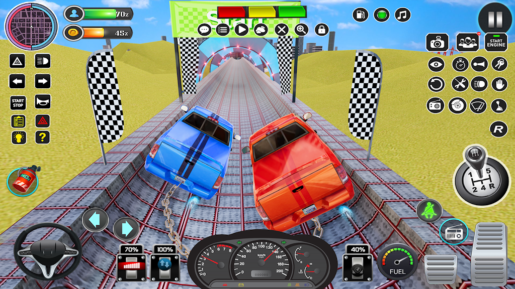 Ordinary racing is old news—jump into a wild challenge where you and your partner race while tied together by an unbreakable chain. Keep speeding, drifting, and jumping without snapping the link as you tackle extreme mega ramps in this Impossible Chained Cars Mega Ramp Racing Game 2020. Feel the thrill of sky-high stunts, precision driving, and immersive crashes designed to push your reflexes to the limit.