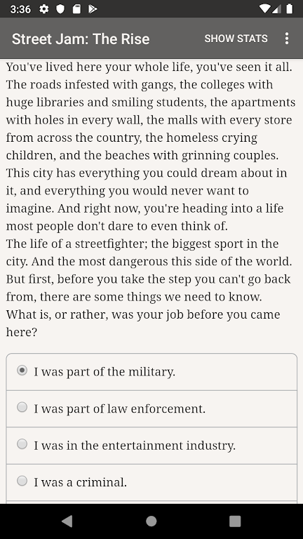Step into a sprawling metropolis on the edge of chaos and carve out your legacy. In this 370,000-word interactive story, your choices determine whether you rise as a respected leader, a feared fighter, a clever strategist, or fall trying. This immersive, text-based narrative lets you build your path with true role-playing freedom—perfect for fans searching for deep story games, branching narrative RPGs, and immersive choice-driven adventures.