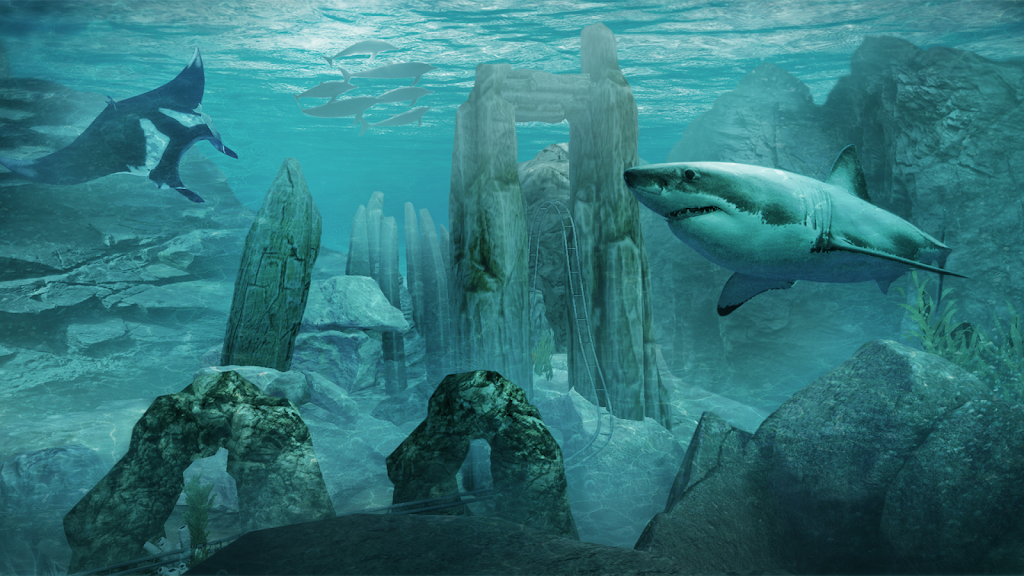 Enjoy lifelike coaster physics, atmospheric environments, and detailed 3D visuals that make every turn, drop, and underwater dive feel real. Explore mysterious ruins, dodge torches and trees, glide past coral reefs and tropical fish, and keep your eyes sharp—one wrong look may attract a hungry shark. Perfect for players seeking a realistic VR theme park experience, a mobile roller coaster simulator, and an immersive 360 virtual adventure.