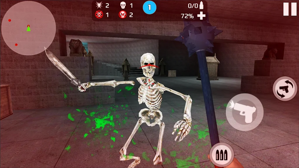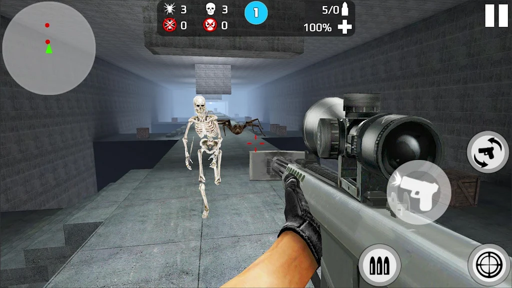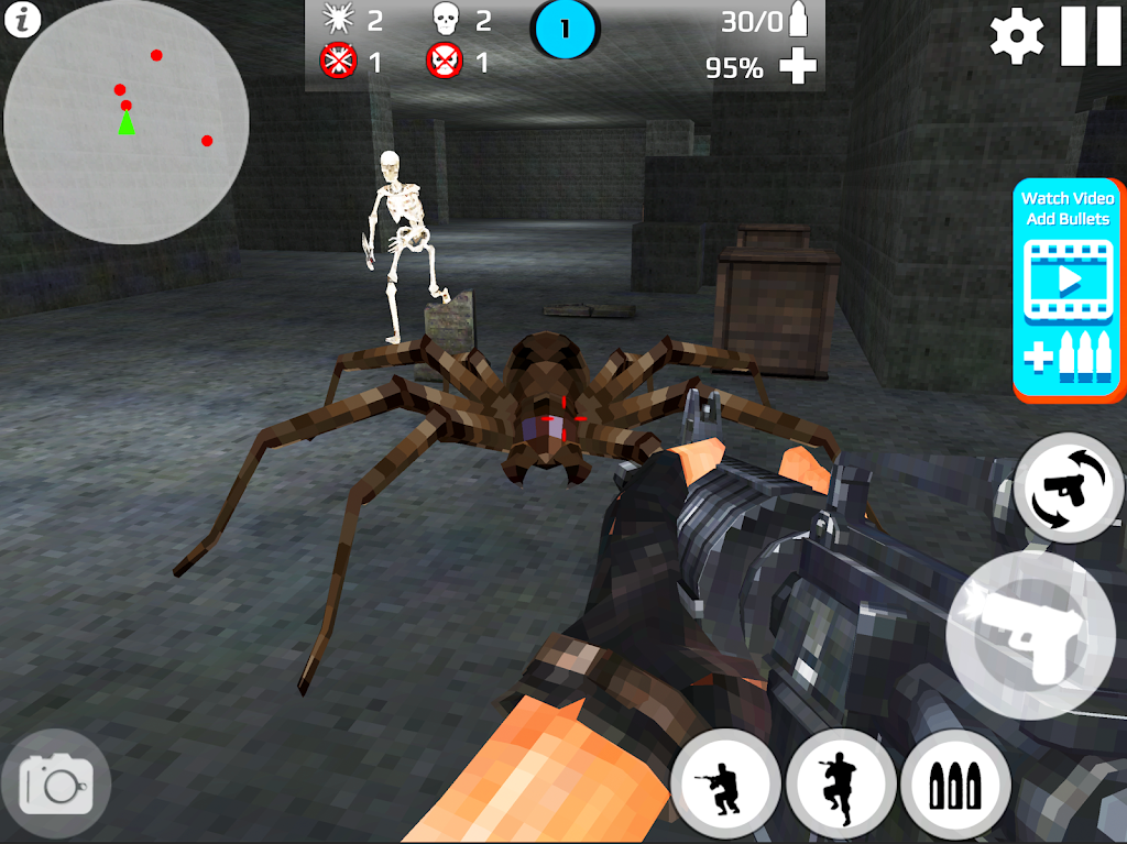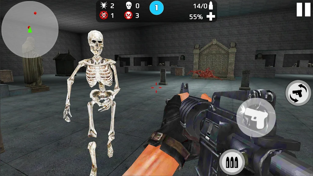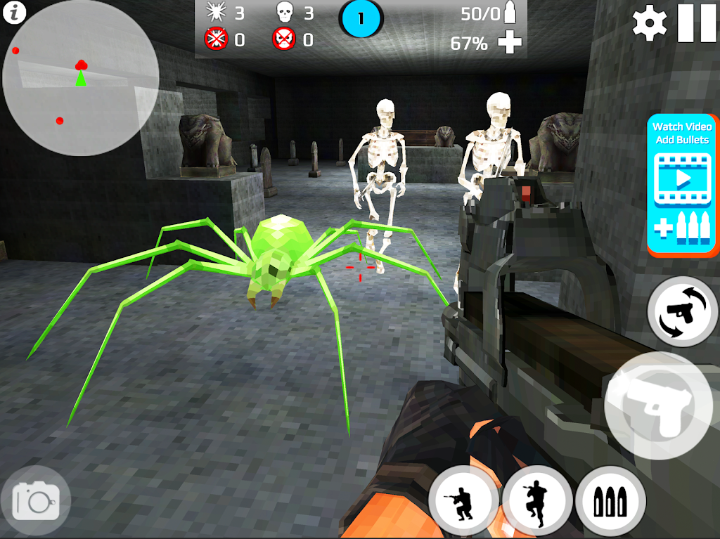 Enter a mobile horror survival game where you battle through underground mazes, haunted palaces, and shadowy graveyards. As a lone fighter in this offline shooter adventure, your mission is simple: eliminate every skeleton undead warrior and giant mutant spider to claim ultimate victory.