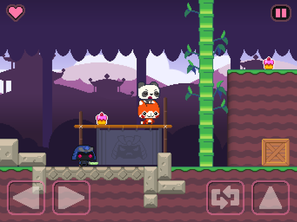 Swap-Swap Panda is a cute platform game where two pandas team up to reclaim stolen cupcakes from pesky ninjas across a wonderful land of bamboo forests, sparkling lakes, and quirky hazards. This casual side-scrolling platform game blends lighthearted exploration with clever puzzles, making it perfect for players who enjoy a co-op puzzle adventure for kids or a retro pixel platforming challenge.