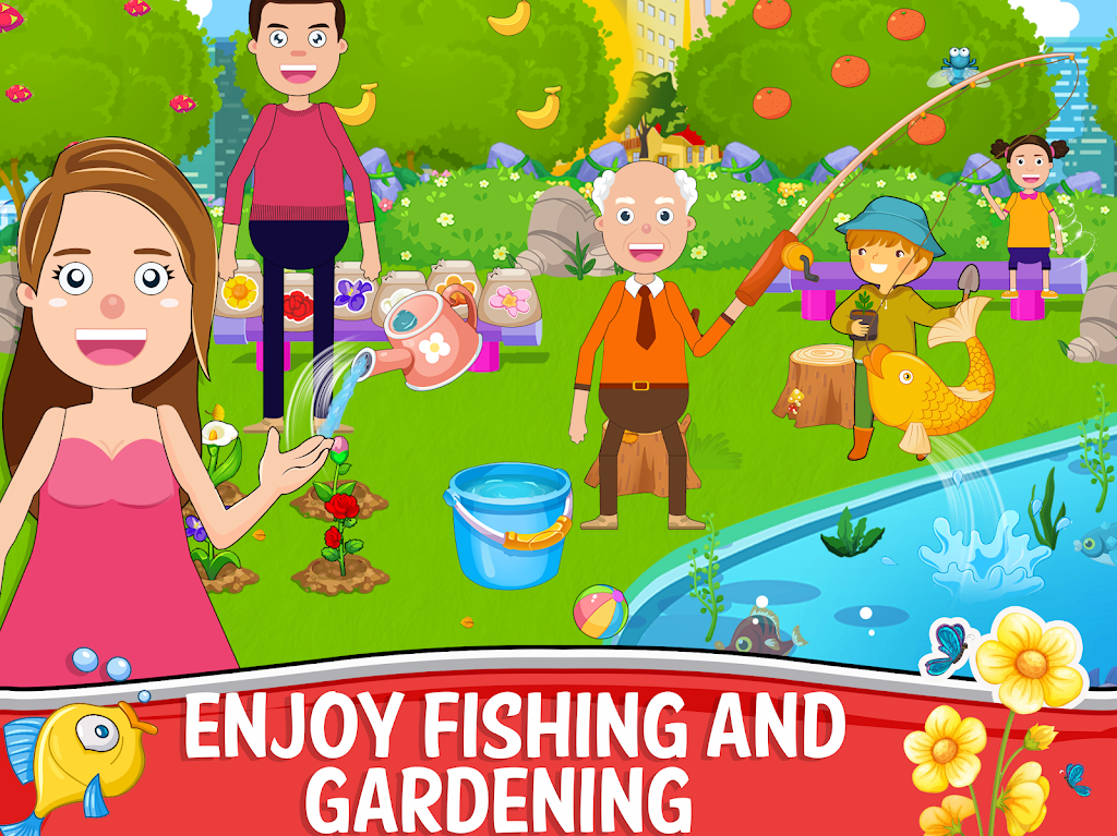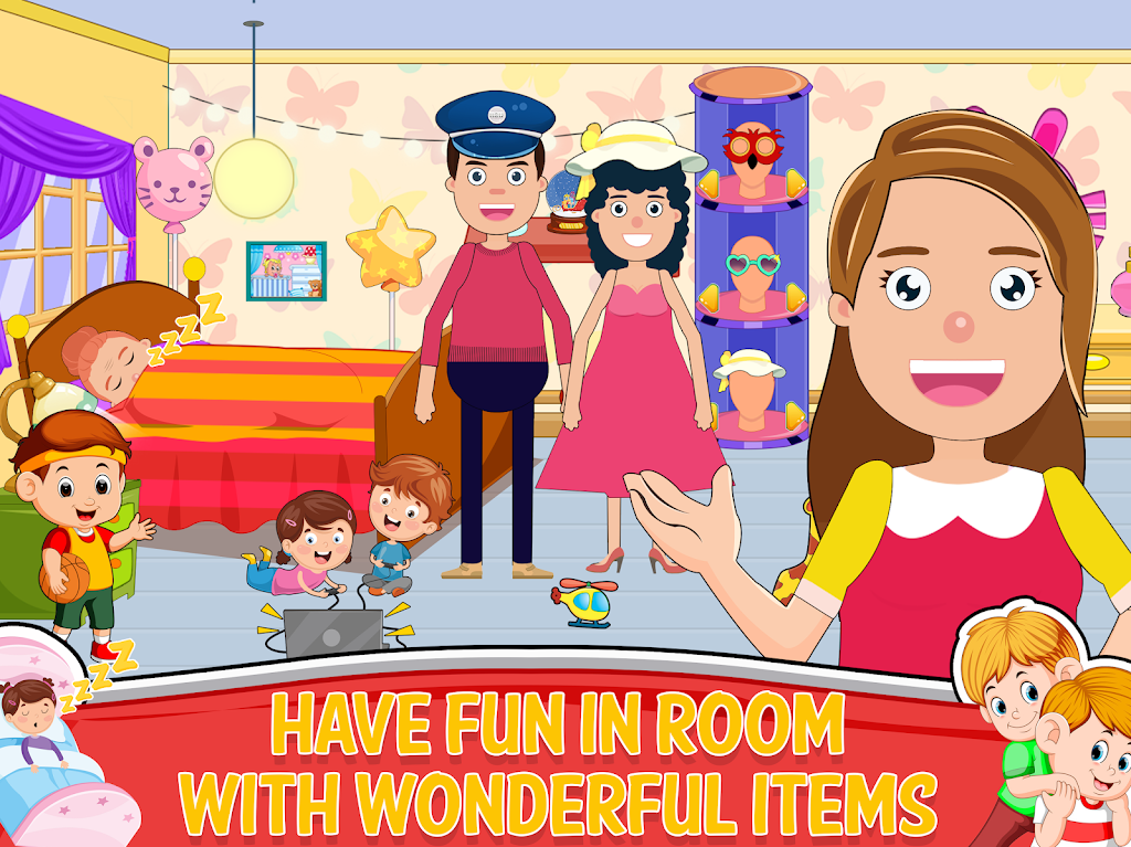 Create stories, enjoy family-time adventures, and build your dream home in this easy, relaxing, and fun pretend play family house game for kids. Design, decorate, cook, garden, and discover surprises in every corner of your mini town sweet home.
