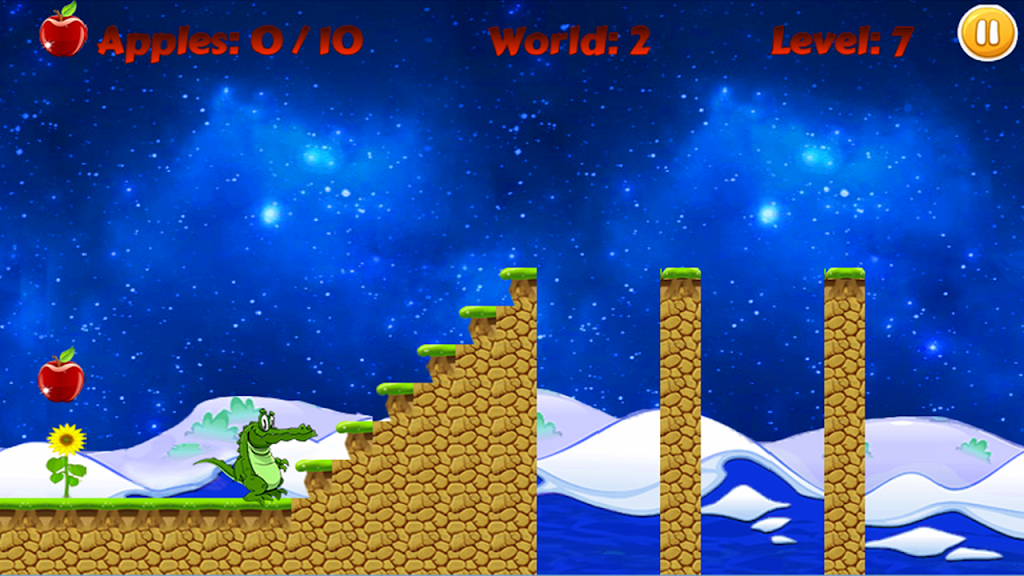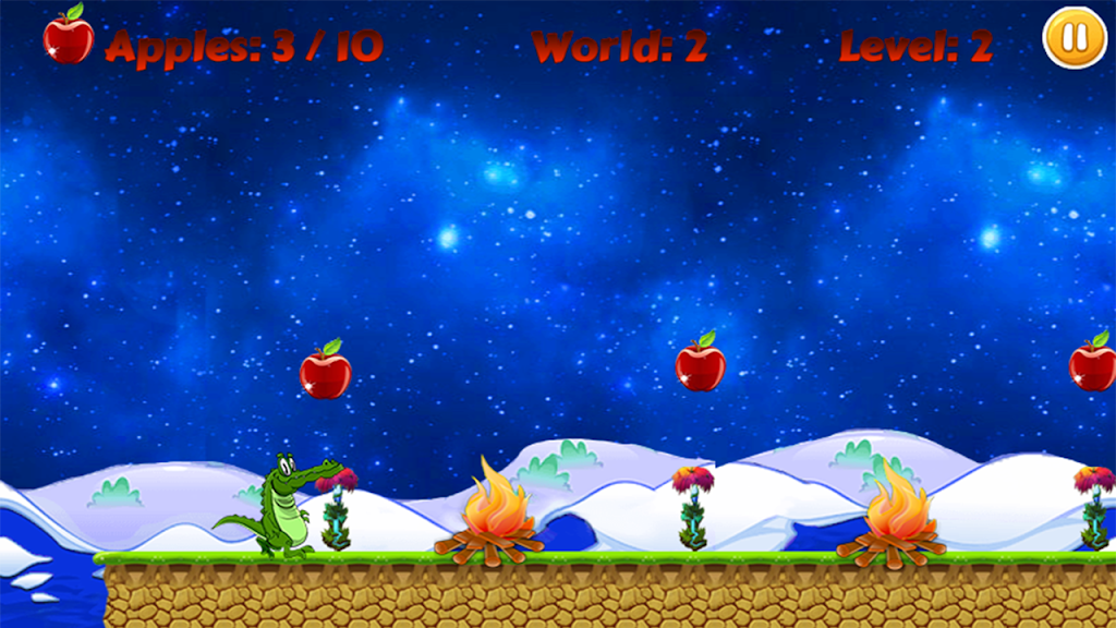 Guide a hungry little crocodile through a chilly open-world–style winter map in this addictive running and jumping adventure. Tap to leap across icy platforms, grab apples, and avoid falling into the freezing water. Perfect for players seeking a casual endless runner, kids’ platformer game, or a lightweight offline arcade challenge.