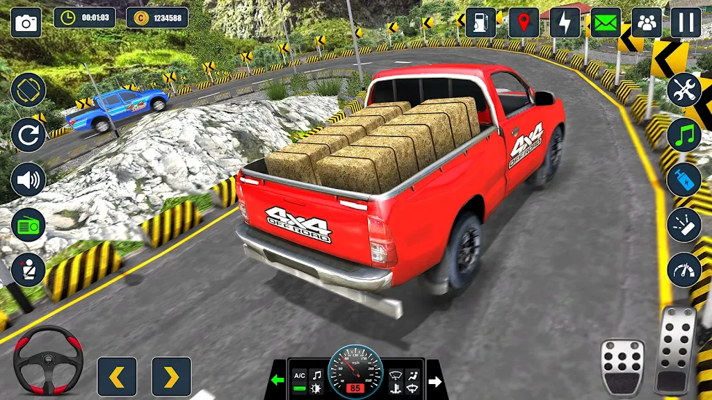 Get ready for an adrenaline-pumping ride in the latest off-road pickup truck simulator! In this game, you’ll take control of a powerful 4x4 Hilux Pickup Truck, navigating treacherous, narrow mountain roads while delivering luxury cargo. Your mission? Pick up various goods like haystacks, beverages, oil, milk, and wooden logs, and transport them to small towns without losing your cargo. Avoid falling off the narrow tracks—doing so means failure and losing the chance to unlock new levels! Show off your driving skills and become the ultimate truck legend!