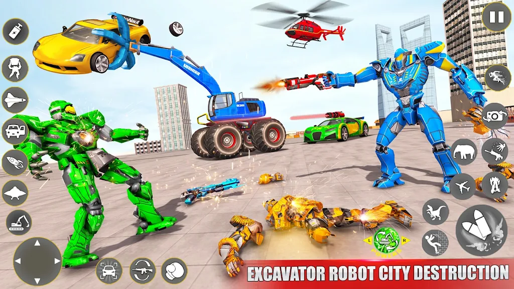 Explore the world of robot car transformations and epic robot battles in Excavator Robot Wars. Engage in intense robot fighting games, taking on gangster robots, evil enemies, and flying cars in this action-packed game. With smooth gameplay, multi-robot transformations, and a variety of superpowers, you'll have endless fun as you fight to save the world from robotic villains. Get ready to experience robot car, bike, and flying transformations like never before in this epic superhero robot game.
