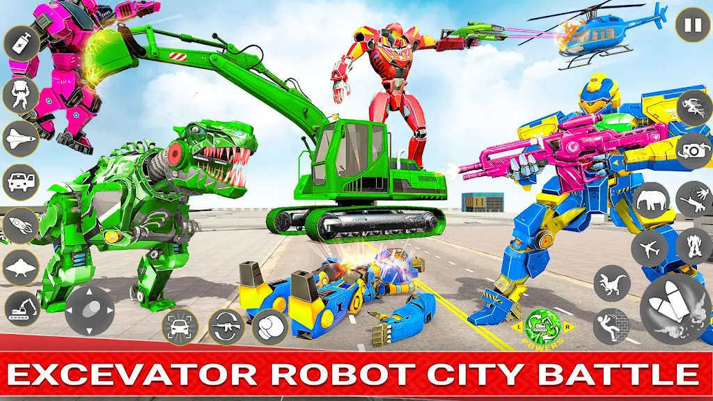 Get ready for an exhilarating adventure in Excavator Robot Wars, an open-world robot transformation game with endless action! Fight as a robot superhero and experience unique gameplay in this exciting robot car game. Whether you're transforming into a flying dino robot, battling enemies in futuristic robot wars, or racing through futuristic battlefields, this game offers thrilling challenges for every robot fan. From car robots to mech battles and multi-robot transformations, no other robot game compares to this one in terms of variety and action!