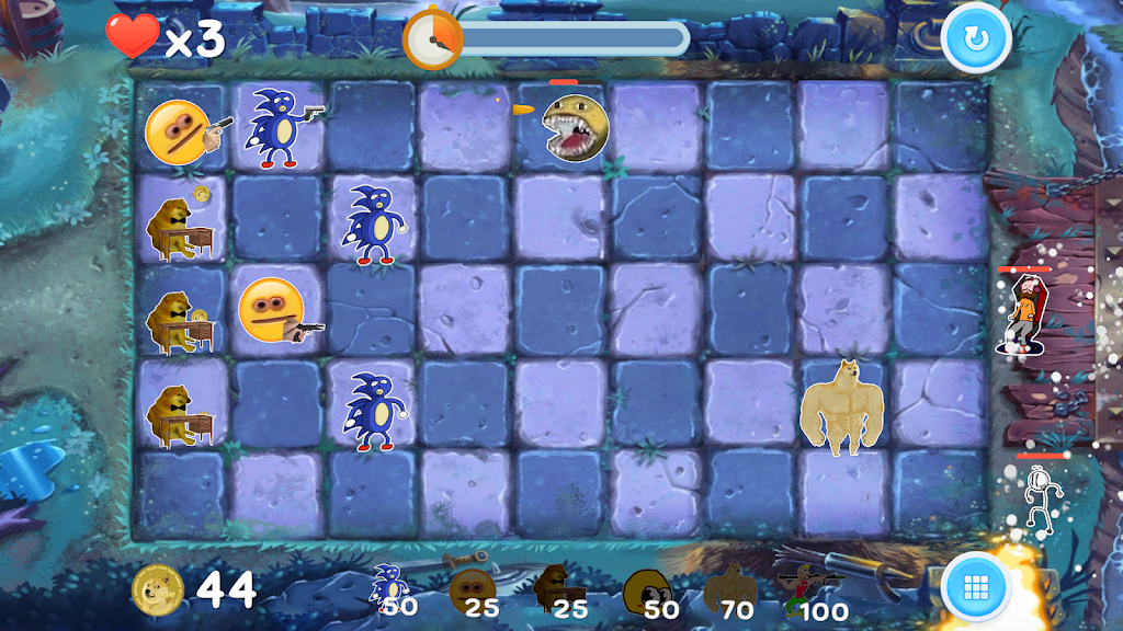 Join Sanic, Chad, Buff Doge, Cheems, and a squad of cursed emojis as you protect your base against waves of chaotic Dead Memes. Battle Uganda, Virgin, Angry Emoji, Beanos, Pewds, and many more in this funny meme survival adventure.