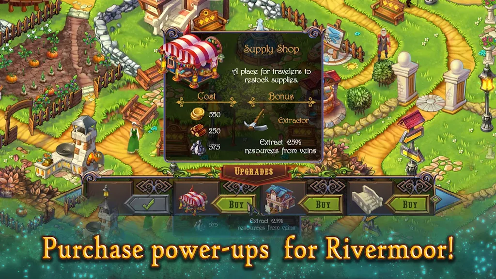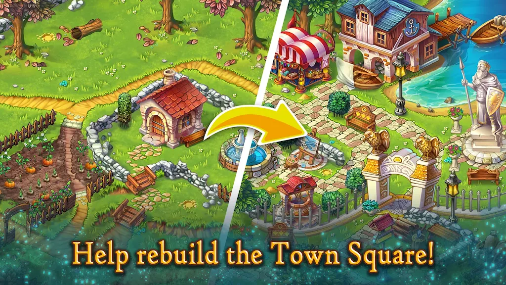 Welcome to Rivermoor, a historic medieval fantasy village waiting for a hero. Guided by Hadrick the constable, choose your avatar and begin an epic journey to restore a fallen town. Match 3 or more gold, stone, and wood pieces to gather resources, rebuild structures, and uncover the forgotten past of this once-thriving land. This offline medieval match-3 game blends classic tile matching with a rich narrative and town-building strategy.