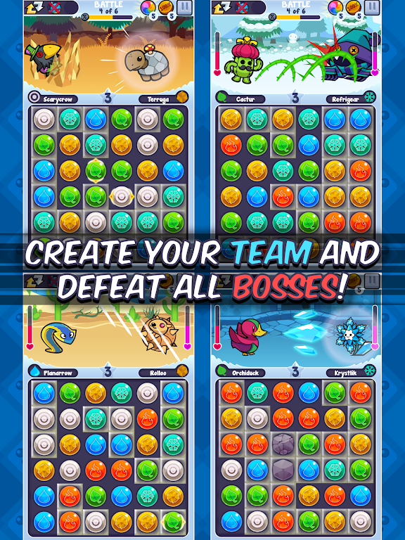 Pico Pets Puzzle brings together RPG and match-3 mechanics, creating a fresh, easy-to-play experience packed with depth. Use both physical and magical skills to defend, attack, and capture a variety of monsters to grow your team. Choose wisely between water, fire, grass, earth, or ice monsters to gain an advantage in each battle and unlock new creatures and abilities. Whether you’re a puzzle master or an RPG fan, this game has something for everyone!