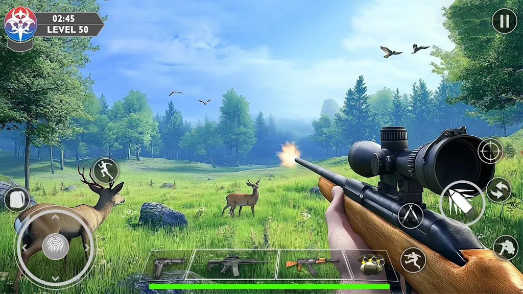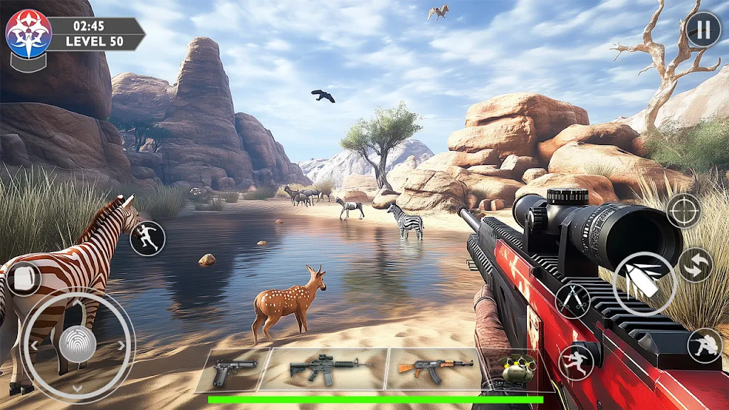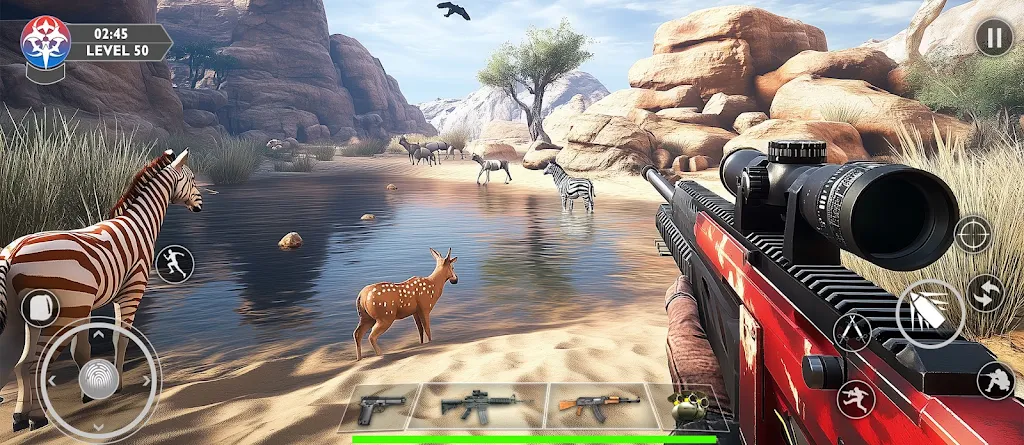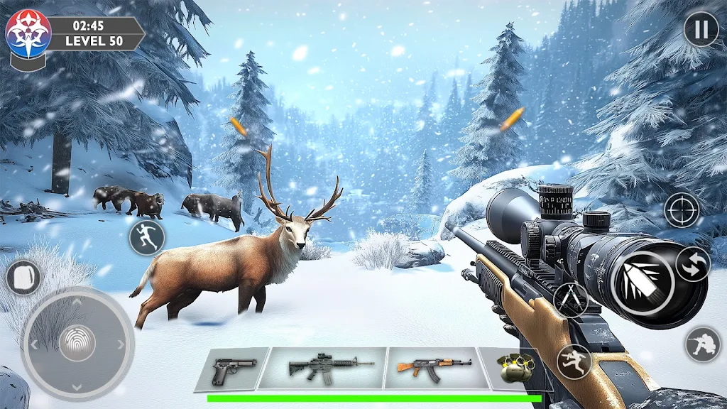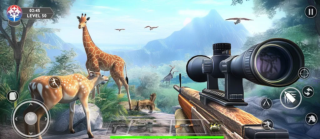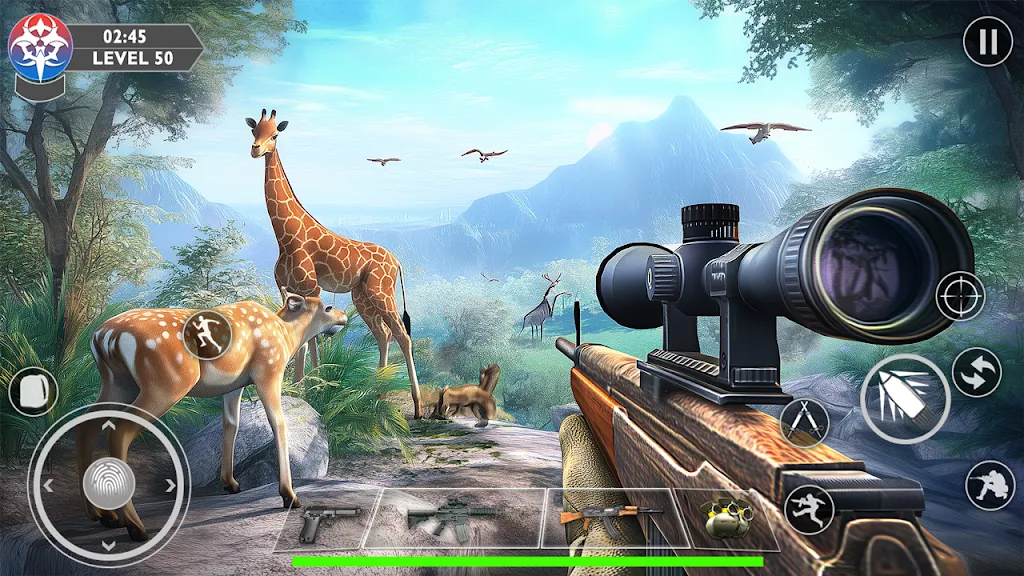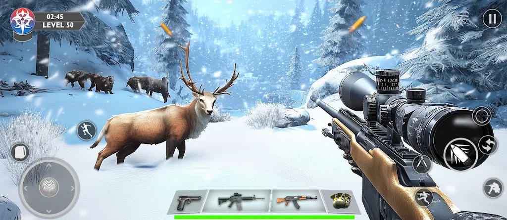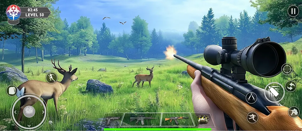 Enter the thrilling world of deer hunting where wild animals like big bucks and stags roam freely in dense jungle and safari environments. Sniper hunting is adventurous and challenging, demanding precision, patience, and skill. Use powerful sniper guns as a stag hunter in this animal simulator and experience the excitement of FPS shooting games offline with realistic 3D graphics.
