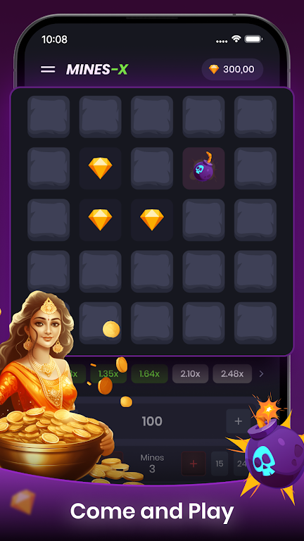 Get ready for an exciting journey in MinesX – Find the Diamond, an open-world anime gacha game where strategy and luck go hand in hand. The goal is simple: step carefully on a grid of 25 blocks, each hiding either diamonds or dangerous mines. Your mission is to avoid the mines and collect as many diamonds as possible. With every move, you'll face a thrilling challenge of balancing risk and reward. Do you have the skill and luck to uncover treasures without triggering a trap?