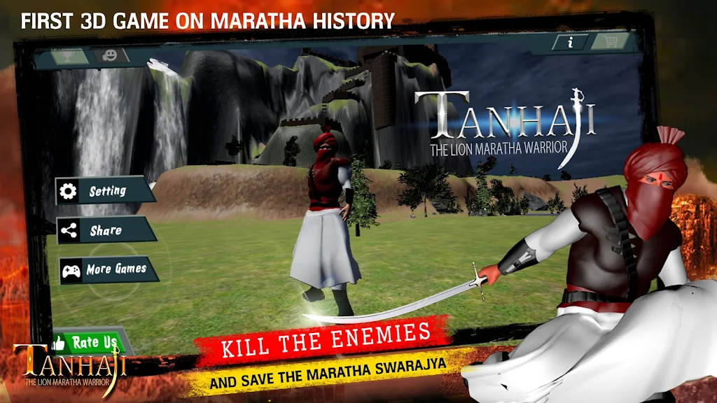 Experience the thrill of open-world battles as you fight Mughals, wield your sword, and use Maratha war strategies to reclaim the strategically important Kondhana Fort for Chhatrapati Shivaji Maharaj. This game not only highlights the history of Tanhaji Malusare but also showcases the courage and determination of Maratha warriors who laid down their lives for their king and country. Get ready for an epic journey filled with action, history, and intense combat!