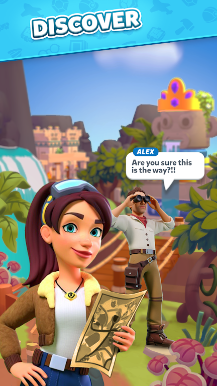Start your journey in **Adventure Tales**, a vibrant mix of adventure simulation and Merge 2—perfect for fans who love exploring lost lands, solving mysteries, and collecting treasures. Join Harper, a brave cargo pilot, her loyal dog Scout, and Alex, an archaeology professor, as they navigate tropical islands, ancient ruins, and abandoned mystery lands after a sudden airplane malfunction forces an unexpected landing.