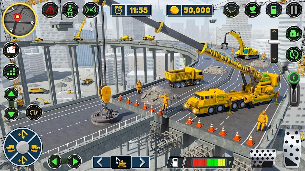 Start with demolition using a wrecking-ball crane, clear rubble with a bulldozer, then survey the site to begin your mega bridge project. Operate a sand excavator truck to dig foundations and gradually raise the layout of your dream city. Each step follows civil-engineering rules for an authentic building experience in City Construction Simulator Excavator Crane Games.