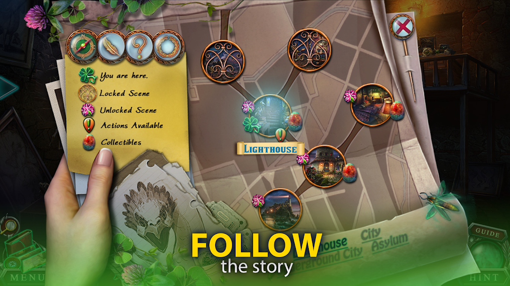 Edge of Reality: Hunter's Legacy is an adventure game filled with hidden objects, mini-games, and puzzles. Start the free trial, then unlock the full journey to uncover a gripping legacy. Perfect for fans searching for “story-driven hidden object adventure,” “casual mystery puzzle game,” and “offline detective puzzle adventure.”