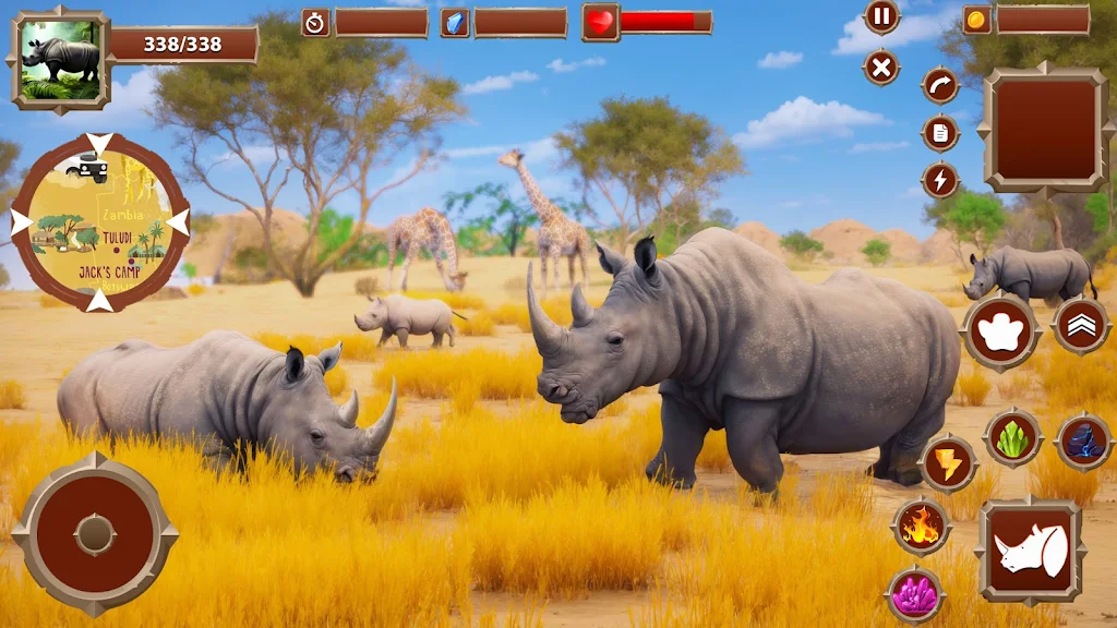 Step into the powerful hooves of a rhinoceros and explore an immersive wild jungle in this action-packed Wild Rhino Survival Simulator. Dive into animal games that blend open-world exploration, wildlife survival, and realistic safari encounters. Navigate vast landscapes, forage for fresh grass, and face predators in a dynamic world perfect for fans of animal survival games and adventure simulation titles.