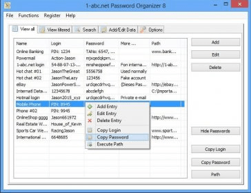 1-abc.net Password Organizer (Password Organizer.exe). Manage your private login and password data with 1-abc.net Password Organizer.