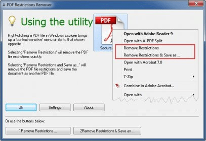 A-PDF Restrictions Remover (PdfRR.exe). Once installed on your PC, this small application will integrate in Windows Explorer...