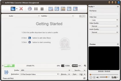 The clean interface centers on a spacious conversion list, supported by a built-in media player and intuitive profile controls. Advanced settings stay tucked away until needed, keeping the workspace clear. Output profiles are smartly organized by codec and device, making the tool equally friendly for beginners and experts.