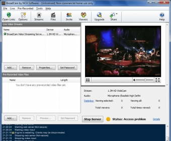 BroadCam Video Streaming Server makes it simple to stream video over the Internet or a local network—from prerecorded clips to live webcam or IP camera feeds. Designed for effortless setup, it delivers reliable performance for creators, small businesses, educators, and anyone needing fast video broadcasting with no technical background required.