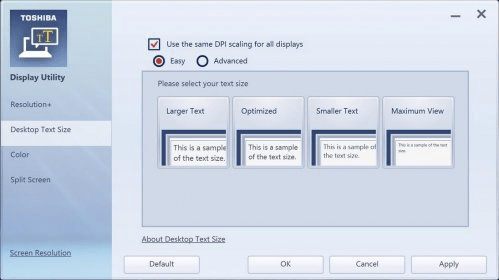 TOSHIBA Display Utility (TosSmartView.exe). TOSHIBA Display Utility is a program that allows you to change the text size on the display...