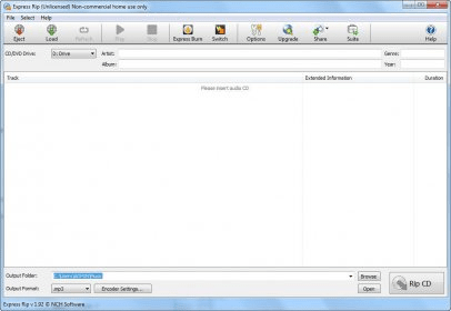 Getting started is simple: select the appropriate CD/DVD drive, insert your audio CD, and Express Rip automatically analyzes the disk, displaying all available tracks. You can review track details like duration, artist, album, genre, and year. The program pulls this information from an online database, although it may not always be 100% accurate. Once you're ready, choose your desired output format and location, and let Express Rip handle the rest.