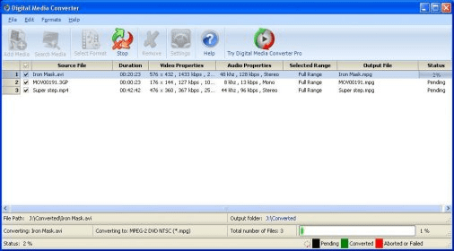 Digital Media Converter is a straightforward, easy-to-use tool for converting video and audio files across a wide range of popular formats. Whether you need to convert videos to AVI, 3GP, MOV, FLV, MPEG, or WMV, or audio files to WAV, MP3, OGG, or WMA, this app has you covered. It also supports converting DVD videos between PAL and NTSC standards. Perfect for quick home media conversion, Digital Media Converter simplifies the process with just a few clicks.