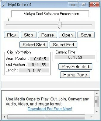 Mp3 Knife (Mp3 Knife.exe) free download, latest version ✅3.7, MP3 Knife is a very simple and small utility that lets you cut segments out of MP3 files.