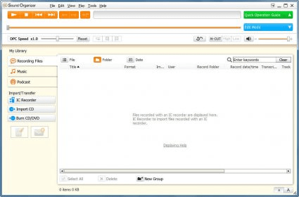 Sound Organizer is the ultimate audio management tool for organizing, editing, and sharing recordings from your Sony IC recorder. Easily import, play, and export your audio files with simple yet powerful features. Convert your recordings to MP3 or other popular formats, split and merge tracks, and even burn your favorite files to compact discs.