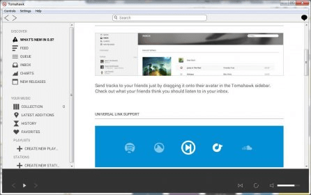 With Tomahawk, you can connect to multiple subscription services, promotion platforms, networked libraries, and online data lockers. It supports content resolvers for all major music platforms, making it the perfect tool for music lovers who want a comprehensive solution to manage and play their favorite tracks, no matter where they are stored.