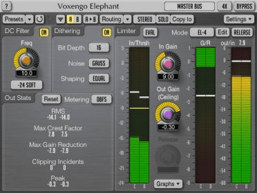 With its 10 predefined limiter modes, flexible mode editor, and waveform graph view, Voxengo Elephant allows precise tuning for professional mixing and mastering. The plug-in also includes advanced tools such as a noise-shaped bit-depth converter, DC offset removal filter, stereo and multi-channel processing, and internal channel routing—ideal for musicians, engineers, and content creators looking for transparent brickwall limiter control and consistent peak integrity.