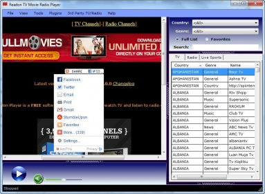 Readon TV Movie Radio Player lets you stream a wide variety of Internet TV and radio channels directly on your desktop PC. It supports Sopcast, Shoutcast, and TVU channels, and integrates Google YouTube playback along with a CD ripper for MP3 and lossless audio output.