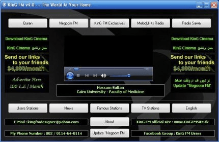 kinG FM (KinG FM v2.0.exe). kinG FM 4.0 is a program to listen to Arabian radio stations through the Internet.