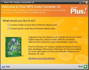 Plus! MP3 Audio Converter LE (AudioConverterLE.exe). Plus! MP3 Audio Converter LE: is part of a free bonus pack for Windows Media provided by Microsoft...