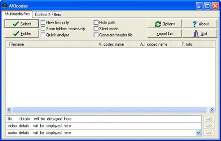 AVIcodec is a powerful, free multimedia file analyzer for Windows that helps users easily identify and analyze various video and audio file formats. With support for a wide range of media formats, AVIcodec provides detailed information about the codecs required to play your files, making it an essential tool for anyone dealing with multimedia content.