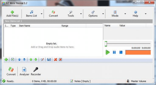 • Resize PCM WAV and ACM audio files to significantly smaller sizes • Convert WAV to ACM, MP3, WAV, WMA and other supported formats • Built-in audio player for ACM, MP3, WAV, WMA without external codecs • Audio Analyzer with waveform graph for quick editing and trimming • Item Editor for processing ranges, file info, and destination ID3 tags