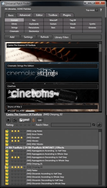 Universal Patch Finder (UniversalPatchFinder.exe). This software allows you to index any kind of patch (Kontakt, REX, WAV...
