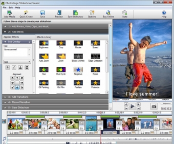 PhotoStage Photo Slideshow. Create a slideshow from your digital photos and videos on Windows and apply effects such as fade, crossfade, zoom and much more.