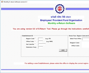 E Return Setup (config.exe) free download, latest version 6.1, The e-Return Tool is used for preparation of Returns by the Employers for filling with EPO.