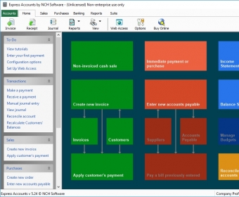 Express Accounts gives you an intuitive way to manage your business finances, combining a clean workflow with clear visual guidance. Designed to flatten the learning curve, it uses a graphical workflow, organized tabs (Sales, Purchases, Banking, Reports), and a left-panel of active actions to help you reach any operation instantly. It’s ideal for small businesses seeking easy accounting, cloud bookkeeping, and efficient cash-flow tracking.