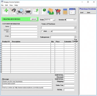 Snappy Invoice System (snappyi.exe). The program makes it easy to prepare and print invoices and sales receipts.