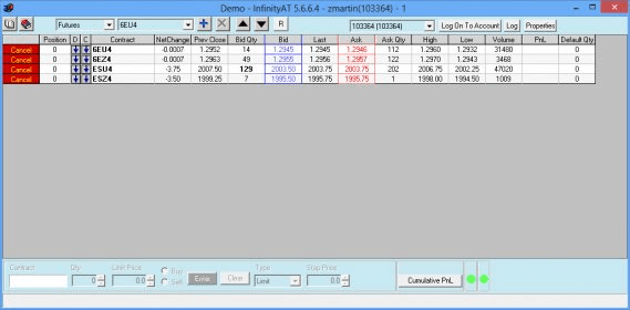 InfinityAT is a powerful program built for futures traders who specialize in fast, high-accuracy day trading. Its clean, intuitive interface provides real-time data tables that keep every contract detail in clear view, supporting efficient decision-making even in volatile markets.